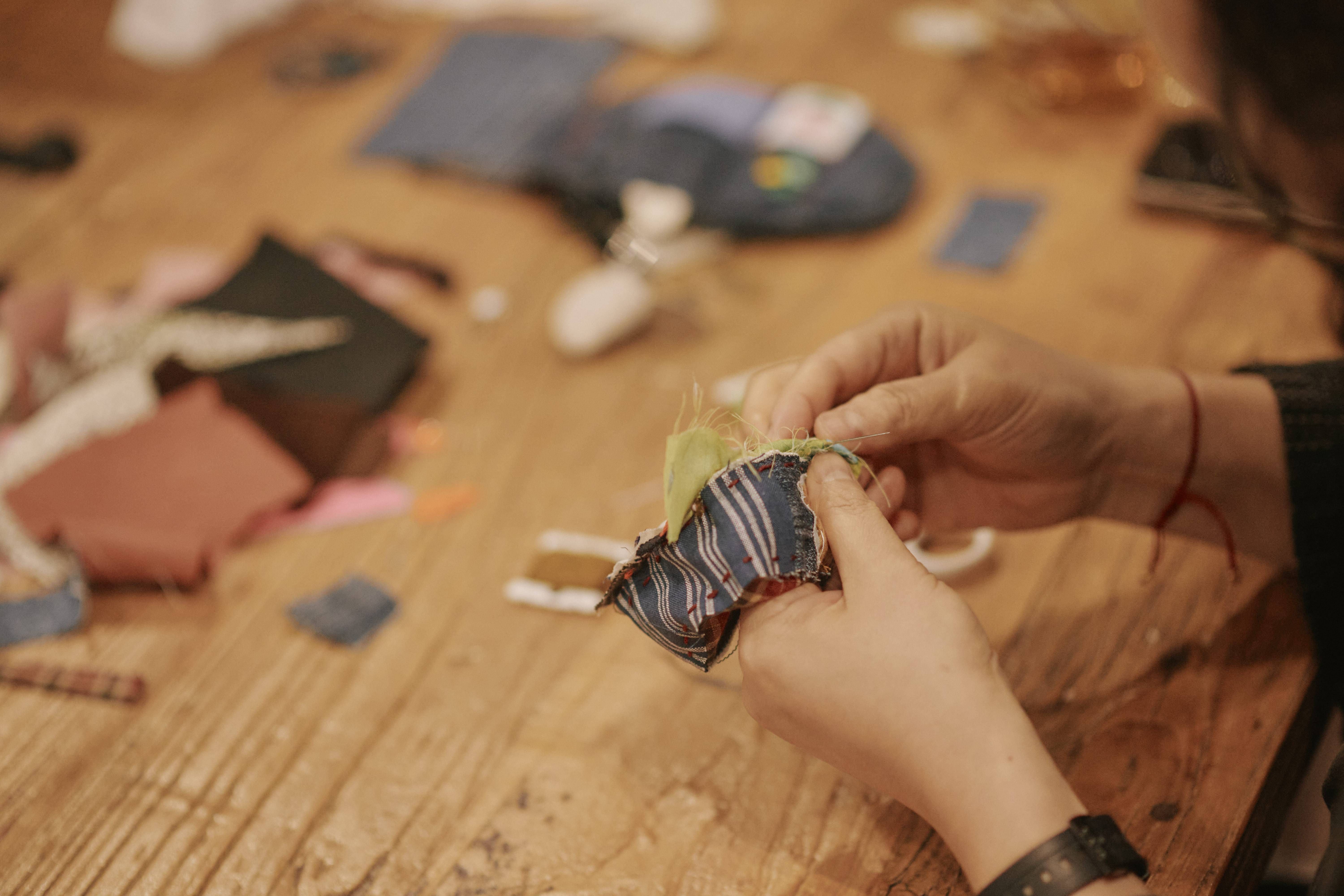 같이 오순도순 둘러앉아 자투리 천들을 활용해 새로운 소품을 만들거나